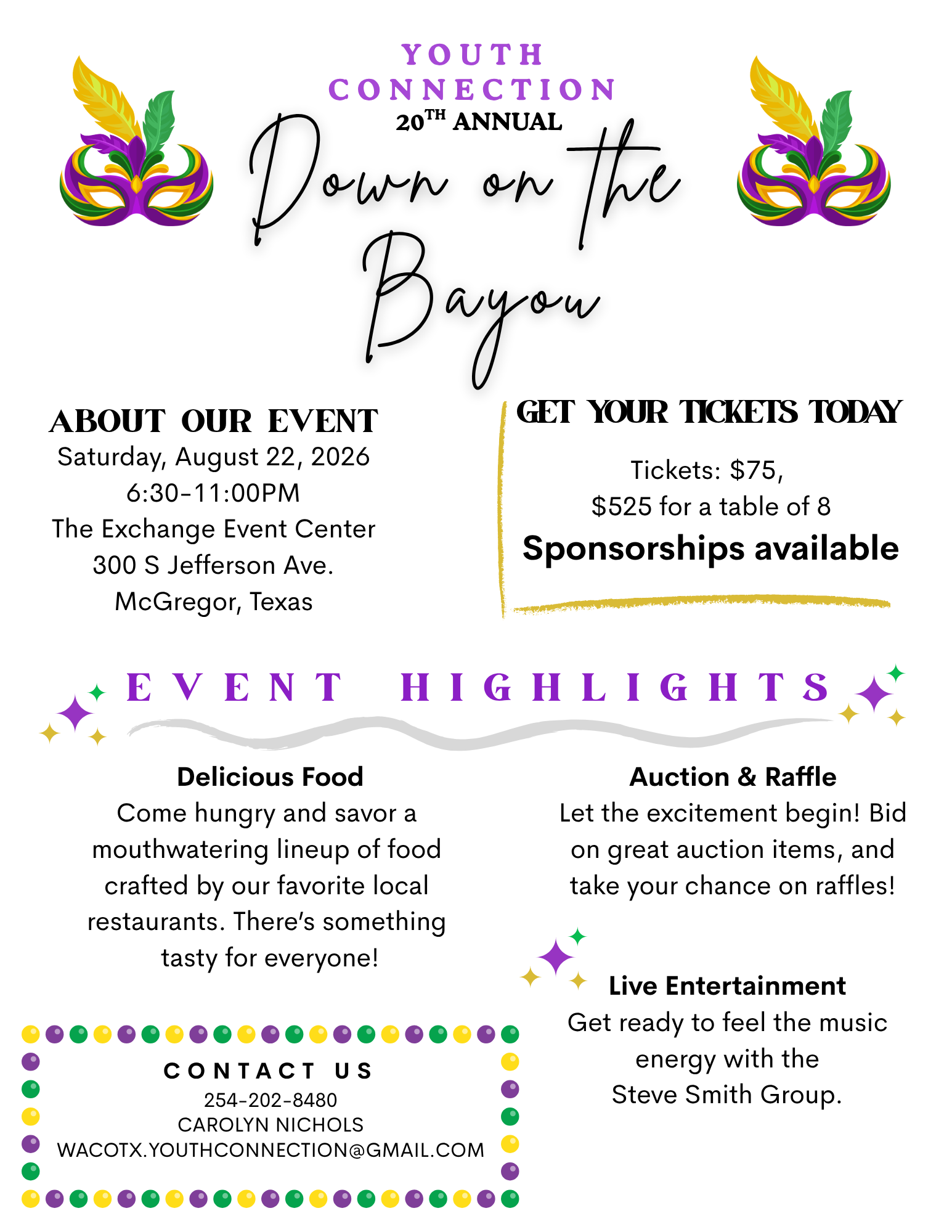 Since 1988, Youth Connection has positively impacted the youth in Waco, McLennan County, and the surrounding community by providing real-life experiences that will ultimately guide young people in McLennan County toward making responsible, informed choices.